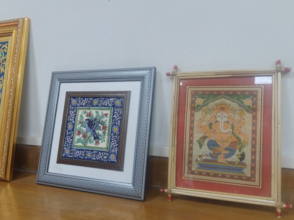 これらに加えて、南アジアの宗教的および文化的象徴を特徴とする作品も受け取りました。おそらくインドから来たと思われるヒンドゥー教の神の額入り像は、その鮮やかな色彩と精神的な意味で際立っています。これらの贈り物は、クライアントの多様な背景を表すだけでなく、私たちが構築するすべてのパートナーシップの背後にある敬意と誠実さを強調しています。