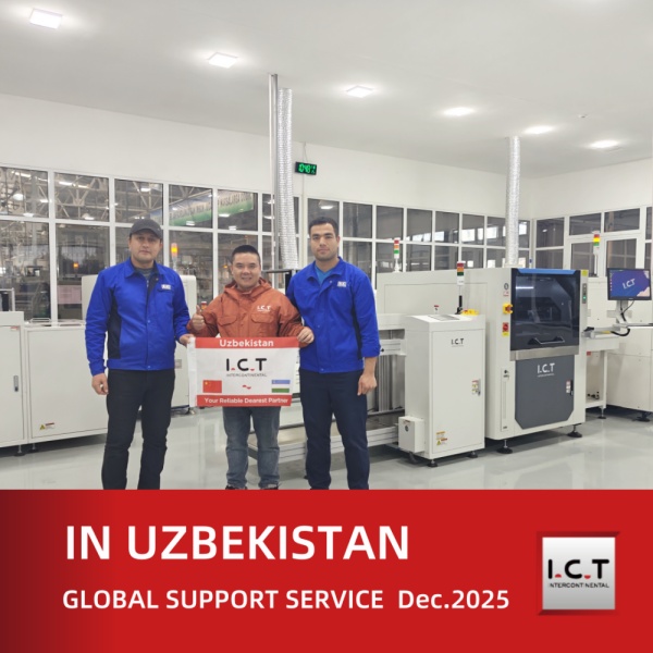 I.C.T のエンジニアがウズベキスタンの現場で SMT 線の設置をどのようにサポートしたかをご覧ください。